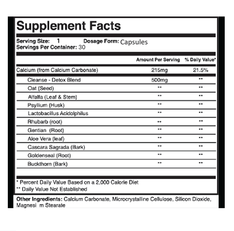 Ingredients For Cleanse (1 Bottle - 30 Capsules)